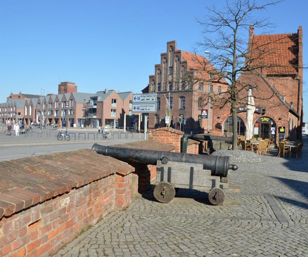 Am Platzzum Ende des Alten Hafens lagern symbolisch zwei alte Kanonenrohre